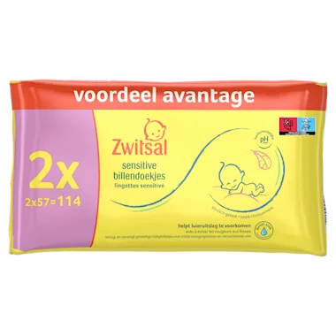 De Zwitsal Sensitive Billendoekjes zijn klinisch en dermatologisch getest en net als onze andere producten (van vochtige doekjes tot vochtige washandjes en snoetenpoetsers) pH-huidneutraal en alcoholvrij. Zo weet je dus zeker dat je het beste in huis haalt voor de gevoelige babyhuid van je kindje. Deze voordeelverpakking met Zwitsal Sensitive Billendoekjes bevat 2 x 57 = 114 doekjes.