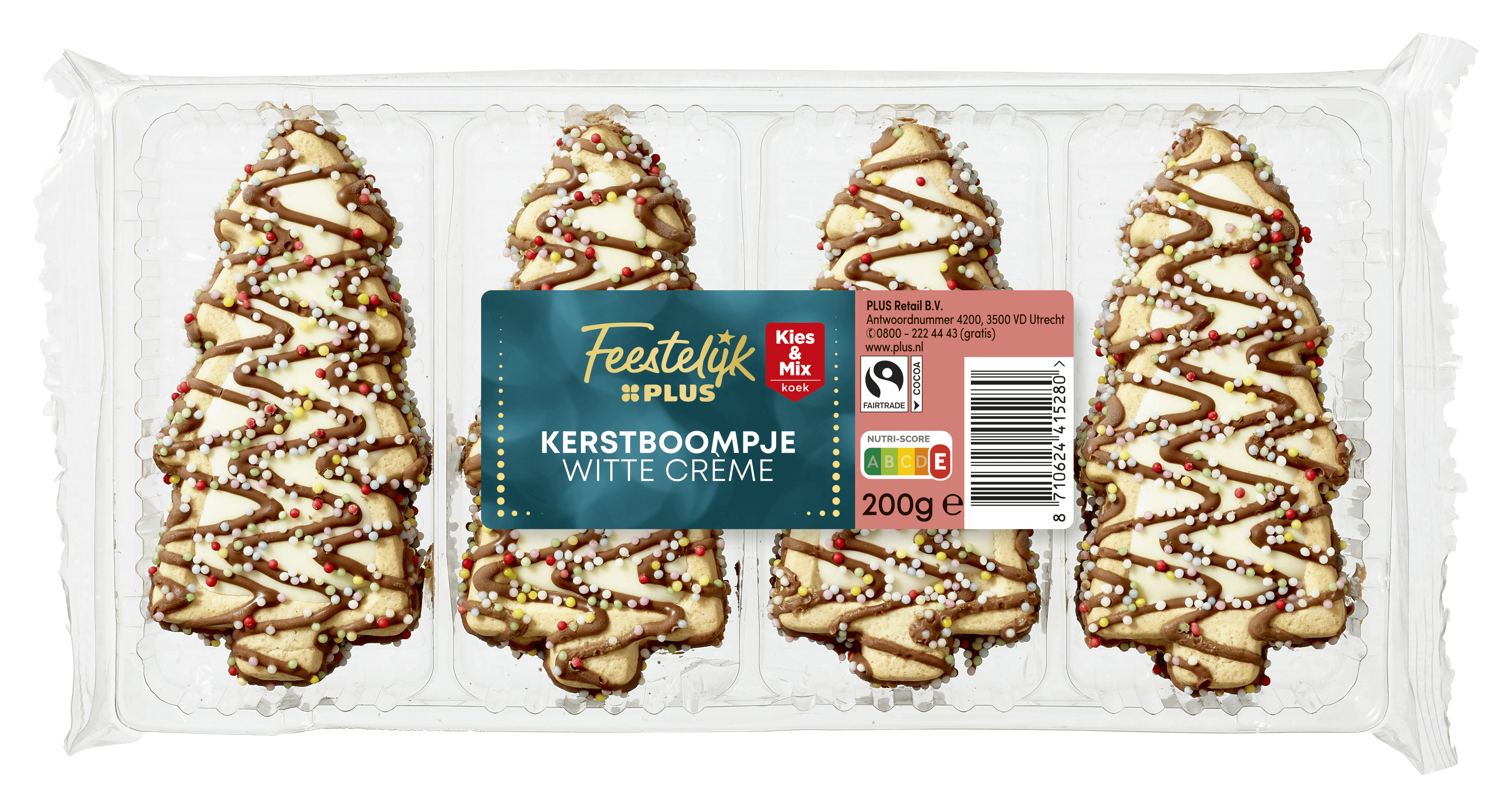 Feestelijk PLUS Kerstboomkoekjes witte creme Fairtrade
