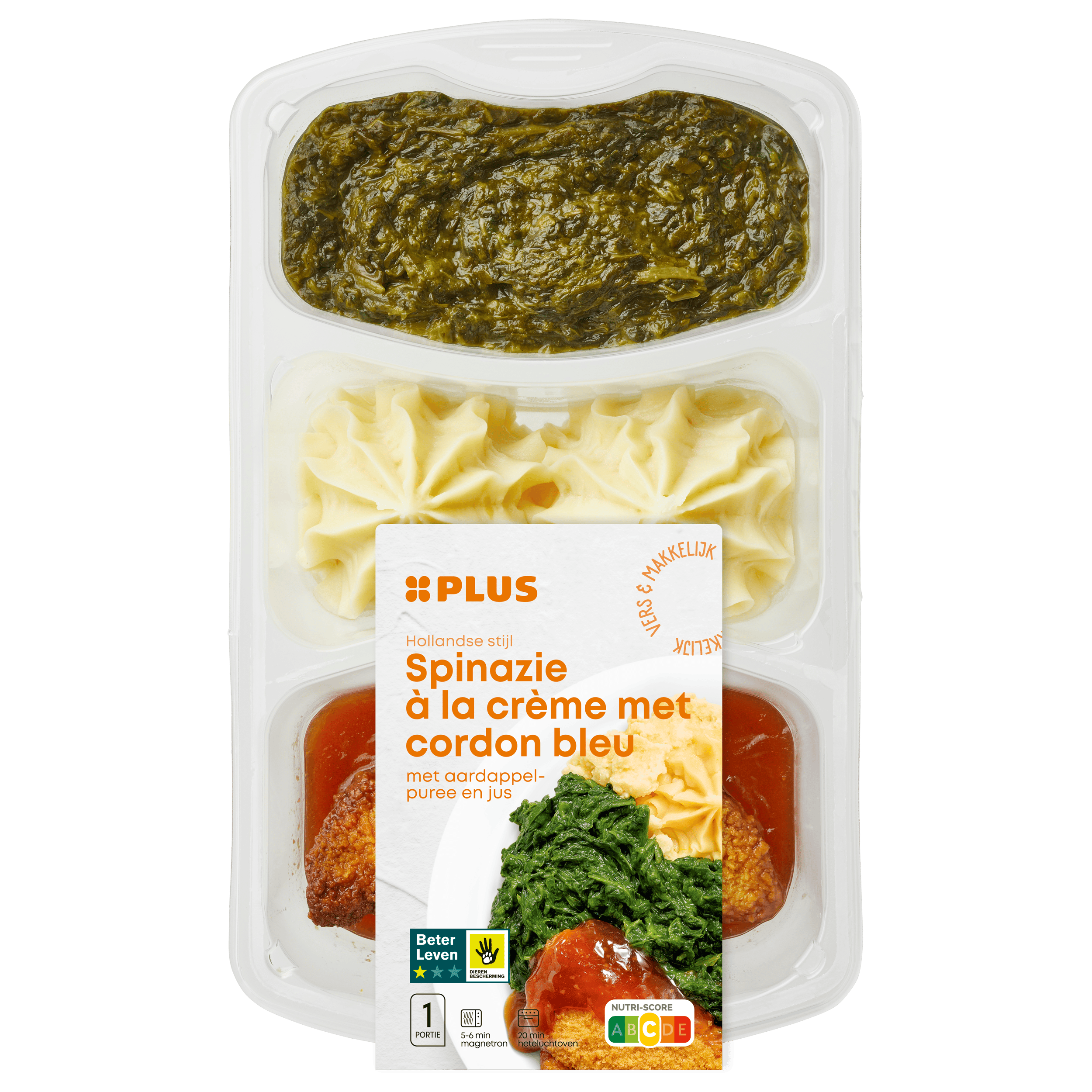 PLUS Spinazie met cordon bleu en puree