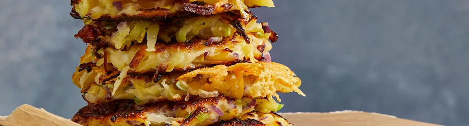 Geef de koekjes extra smaak met specerijen, geraspte kaas, zongedroogde tomaten, olijven en/of pesto. No-waste tip! Een restje (gekookte) groenten is ideaal én extra lekker om aan de aardappel-uienkoekjes toe te voegen.