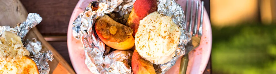 Voeg voor het grillen een scheutje bruine rum aan de appel-pakketjes toe.