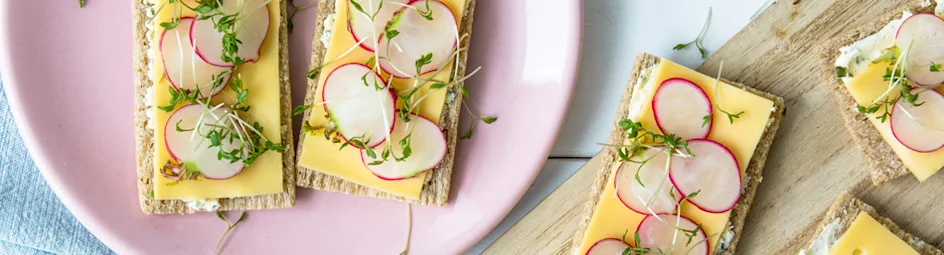 Crackers met kaas, tuinkers en radijs