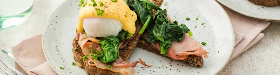 Ook zo'n zin in een echt Amerikaans eitje? Maak dan de Eggs benedict! Een gerecht dat bestaat uit een Engelse muffin, ham, gepocheerde eieren en Hollandaisesaus. Met onderstaande stappen zet je dit heerlijke eiergerecht in een handomdraai op tafel.