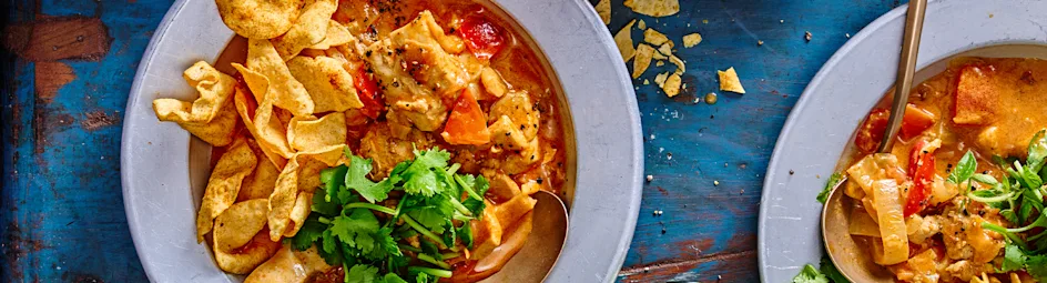 3. Serveer deze Klassieke Butter Chicken Curry met knapperige Pappadum Snacks en verse koriander.