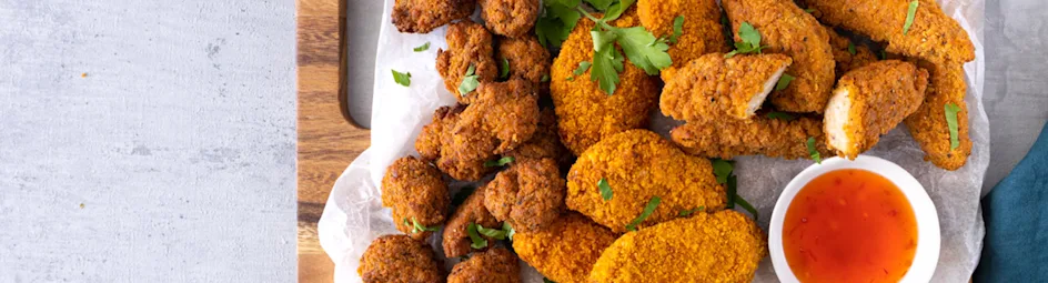 3. Frituren: Verhit de olie tot 170-180°C. Frituur de gepaneerde kipblokjes in 4-6 minuten tot ze goudbruin en krokant zijn. Laat de blokjes uitlekken op keukenpapier.
