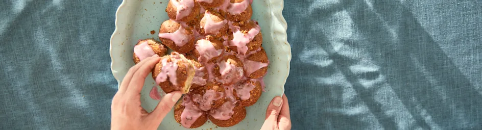 Versier de broodjes uit de oven met wit of roze chocoladeglazuur. Voeg aan het deeg voor extra smaak nog 2 tl gemalen kaneel toe.