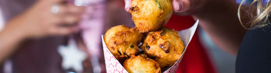 Verhit de zonnebloemolie in een (frituur)pan tot 180ºC. Schep met 2 ingevette lepels (of een ijslepel) ballen van het beslag en laat deze in de olie zakken.