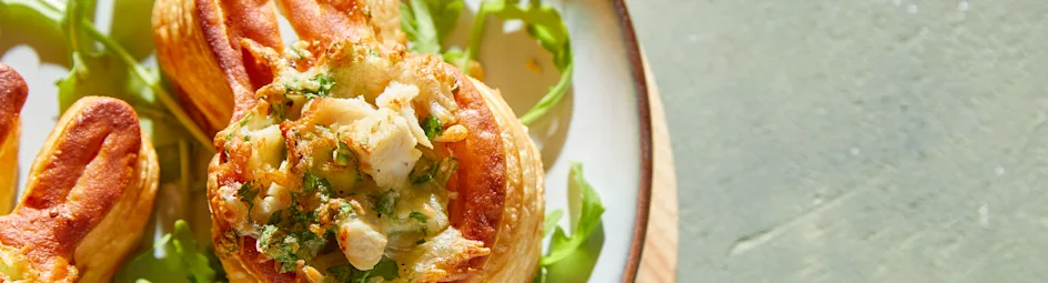 Bak de gevulde pasteibakjes in de voorverwarmde oven in ongeveer 20 min. goudbruin en gaar tot miniquiches. Dek de pasteibakjes af met aluminiumfolie als ze te bruin worden.