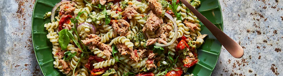 Pasta met Twist tonijn met ovengedroogde tomaten en kruidendressing