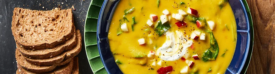 Bereid de pompoensoep volgens de aanwijzingen op het verspakket.