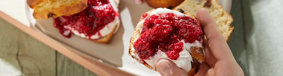 Scones met geklopte vanillericotta en gember-frambozenspread