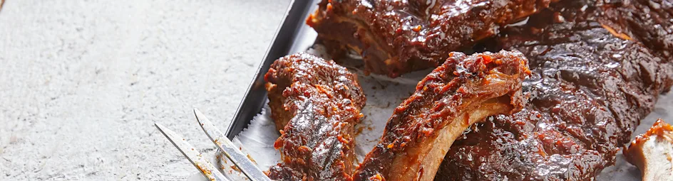 Kook de rijst volgens de aanwijzingen op de verpakking gaar. Bak de spareribs 10-12 min. op de hete barbecue om en om.