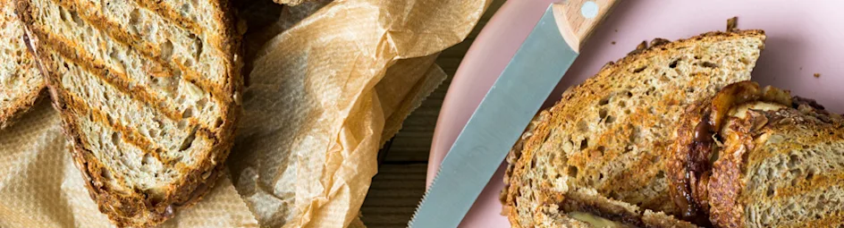 Smelt de boter in een steelpan en voeg de kaneel toe. Snijd de bananen in plakjes en beleg 4 sneetjes brood met de hazelnootpasta en de plakjes banaan. Dek af met de overige sneetjes brood en bestrijk de belegde broodje met de kaneelboter. Plaats de broodjes 5-6 minuten in het tosti-apparaat.