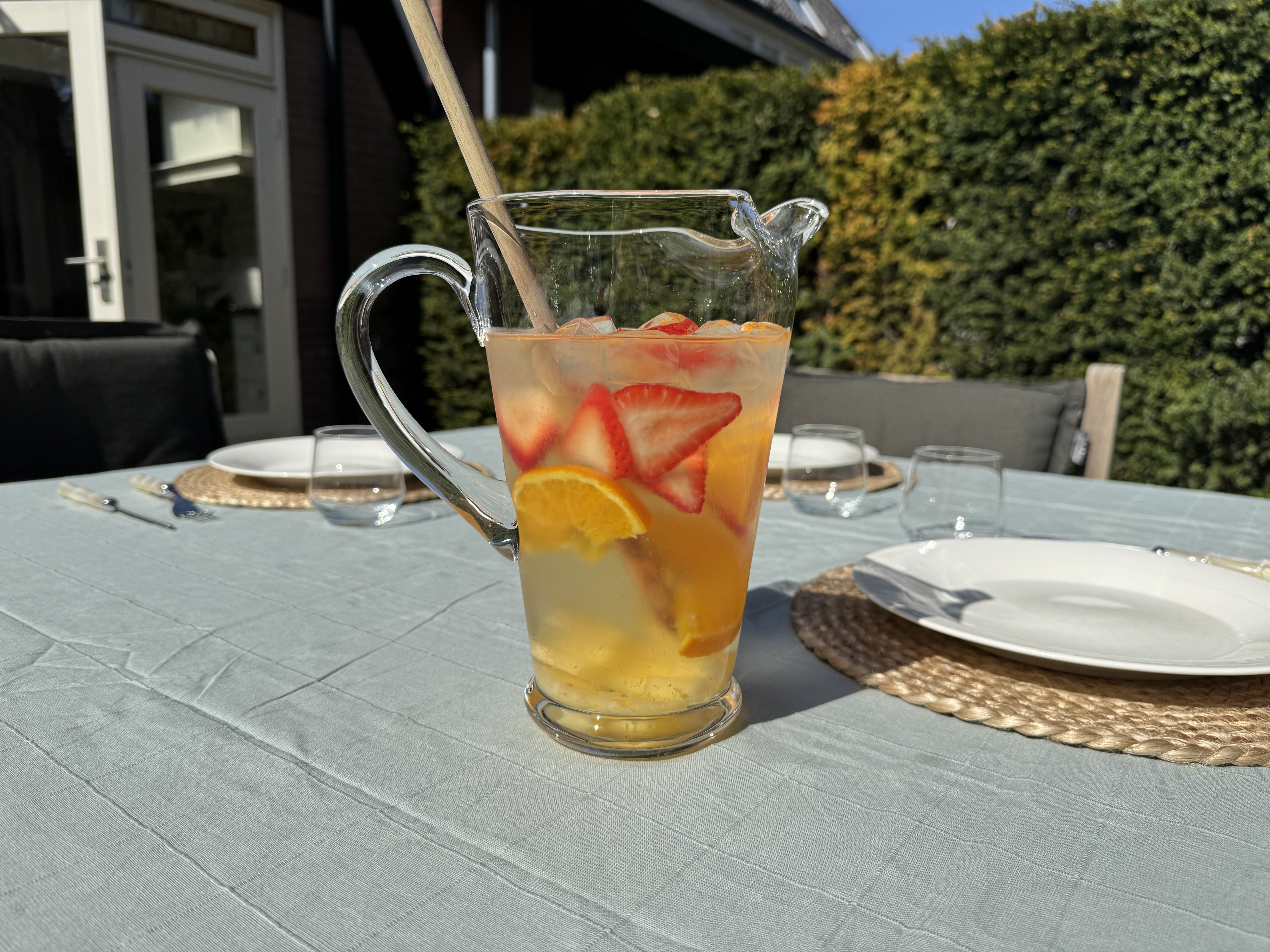 Witte sangria met aardbei, sinasappel en ananas