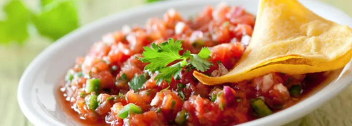 Maak je BBQ tafel af met een thuisgemaakte salsa! Salsa is het Spaanse en Italiaanse woord voor ‘saus’. Hiermee worden voornamelijk pittige sauzen bedoeld uit de Latijns-Amerikaanse keuken. Leuk om zelf te maken en lekker om in te dippen!