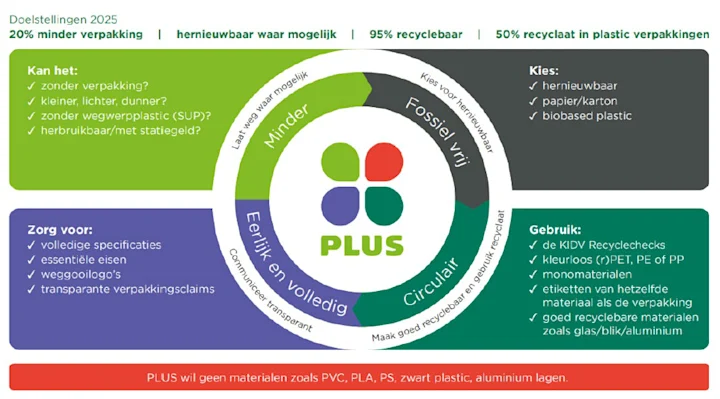 Claims related to sustainability and addressed to consumers are clearly worded, are not misleading, are objectively substantiated, and are in line with laws and regulations, the Netherlands Authority for Consumers & Markets (ACM) guideline for sustainability claims and the Code for Sustainability Advertising. Sustainability claims on PLUS private label packaging are discussed in advance with the quality and communications department.